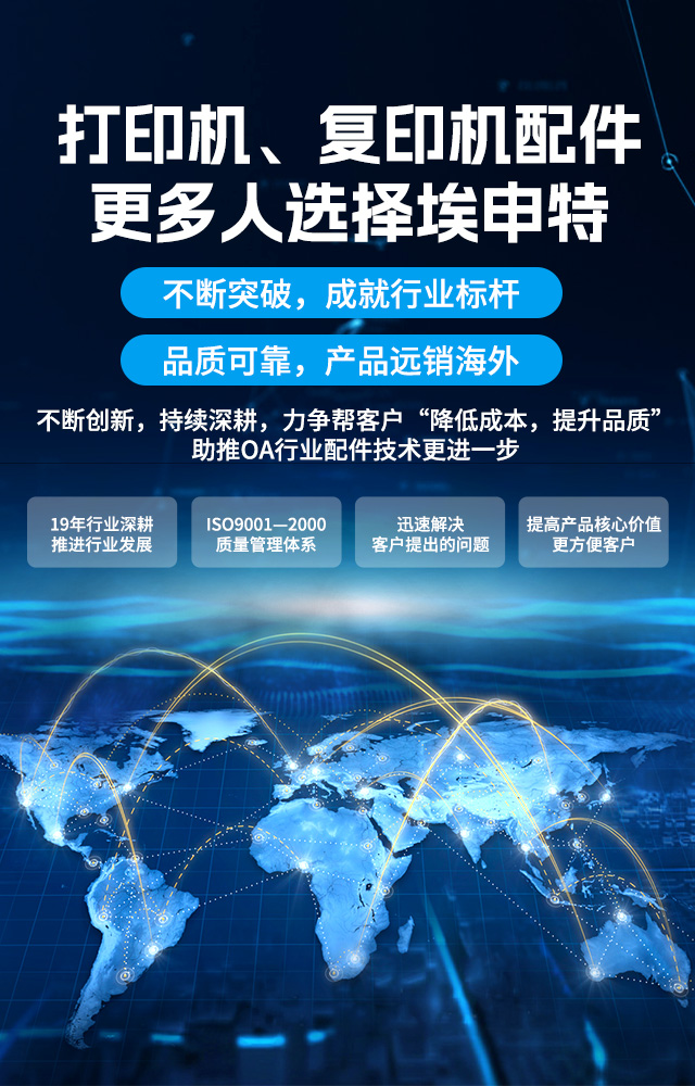 埃申特推出的打印機、復印機、定影膜、充電輥等產品經過市場驗證,贏得眾多客戶的青睞,出口至亞、歐、美、非、大洋洲等十幾個國家和地區
